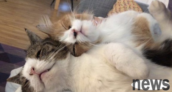 A couple living in Denmark, McKayla and Michael, adopted a special needs cat named Monty many years ago. Monty was born without a nose bridge, making his appearance different from ordinary cats. Stories about their careful care of Meng Di often appear on social media pages, and Meng Di has become a little internet celebrity. And just a few days ago, McKayla saw on Facebook that Jasmine, a calico cat with no bridge of nose like Monty, was waiting for adoption. They didn't expect to meet another cat that looked exactly like Monty. They thought it was destiny and decided to adopt Jasmine. Unexpectedly, Jasmine looked similar to her when she saw her. Monty fell in love with this cat brother, clinging to him all day long, like a little follower, which made both Michaela and Michael feel that adopting Jasmine was a very right decision!