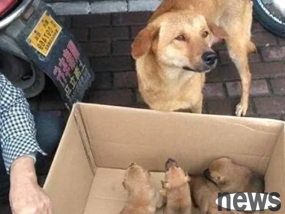 I knew that one day the owner took the native dog to the market to buy things. When passing by the dog farm, the native dog broke away from the owner's dog leash and ran in front of a litter of puppies packed in cardboard boxes. It turned out that the native dog recognized his own children in the dog farm. It was rare for mother and son to reunite and see themselves again. His own children are really sweet, but unfortunately this litter of babies already belongs to someone else. The next scene became popular on the Internet. The mother dog cried, looked at the owner with tears in her eyes, and made a whimpering sound. The mother dog asked her owner to take her children home. Seeing the dog's moist eyes, the owner was also touched.
