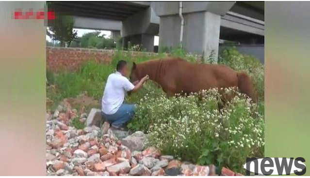 Of course, Mr. Yue also searched for the owner of the horses for a long time, but no one claimed them. Considering the safety of the surrounding vehicles, he tied up the horses! The horse ate leisurely and happily on the grass, but Mr. Yue who picked up the horse was very anxious.