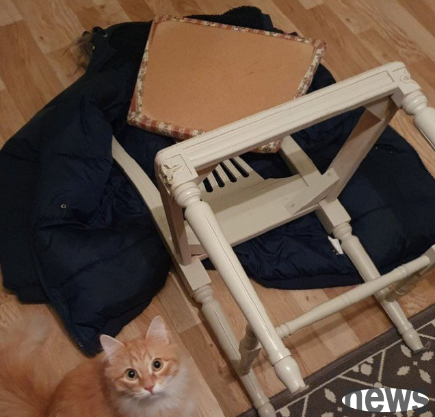 , which are not good-looking at all, so the cat decided to help clean it up.