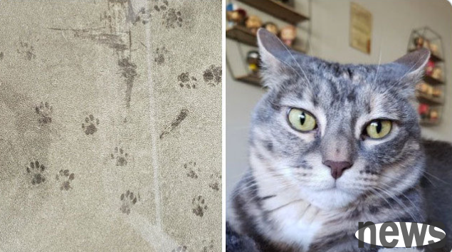 The carpet is too monotonous, so the cat helps print beautiful patterns with jiojio.