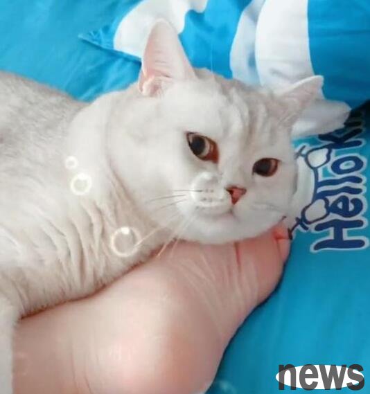 The cat seemed to feel the owner's gaze, raised its head and turned to look at her. The paw holding her feet did not move, and her eyes looked directly at each other. Finally, the owner turned his head first. The cat looked puzzled and continued to sleep on the owner's feet, which was very comfortable.