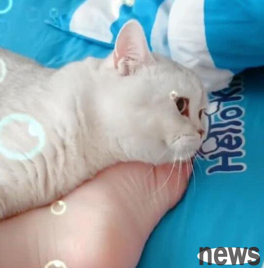 The little guy was resting on the bed. As soon as the owner saw its plump little body, he couldn't help but want to stroke his hair. As soon as he reached out and touched the blue cat, the little guy opened his eyes. Of course, it doesn't matter to the owner whether he wakes up or not. But what she didn't expect was that as soon as she touched the cat, the guy grabbed her hand and bit her. Although it wasn't really a bite, it was obvious that the little guy was unhappy.