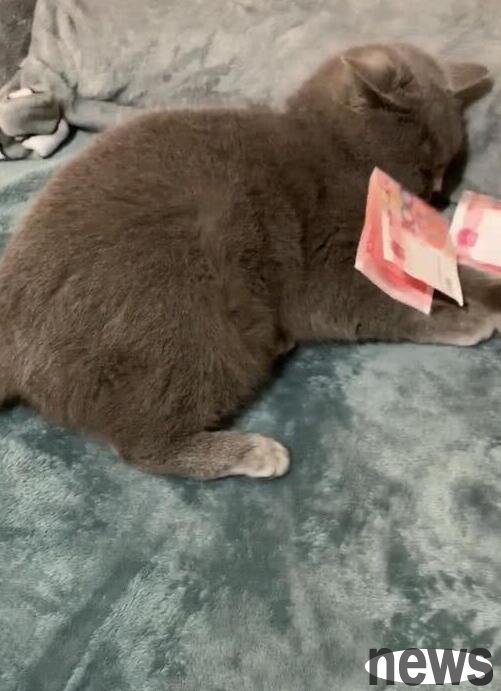 Not to mention, this trick really works. After seeing a few big red bills in front of him, the cat lost his temper instantly, and the owner started to masturbate again. The blue cat showed no resistance throughout the whole process, and was even a little satisfied. Meow: OK, as long as you have the money to buy the dried fish, you can say anything, you can masturbate as you like!