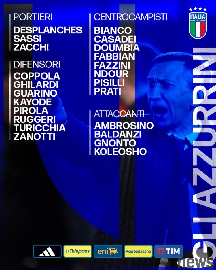 The Italian U21 announced the list of players participating in the U21 European Cup, including Baldanzi, Nyonto, Cassadi, Picili and Rugeri.