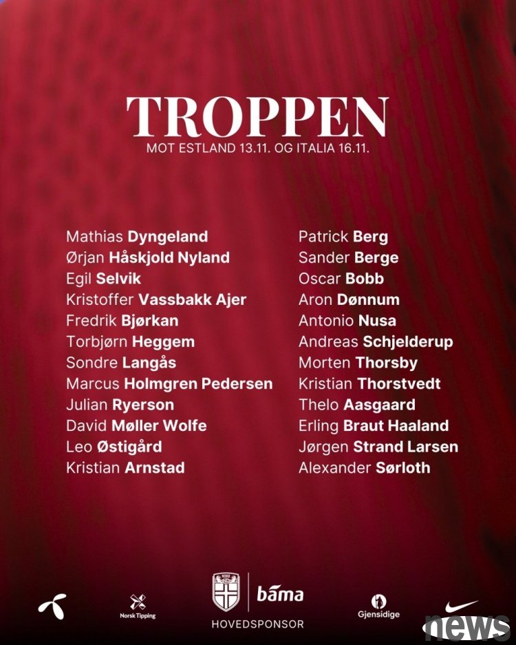 The Norwegian team announced the player list for the November international match, led by Haaland, and Odegaard is injured. Norway will face Estonia and Italy in the November World Cup preliminaries. Norway's November World Cup qualifying roster...