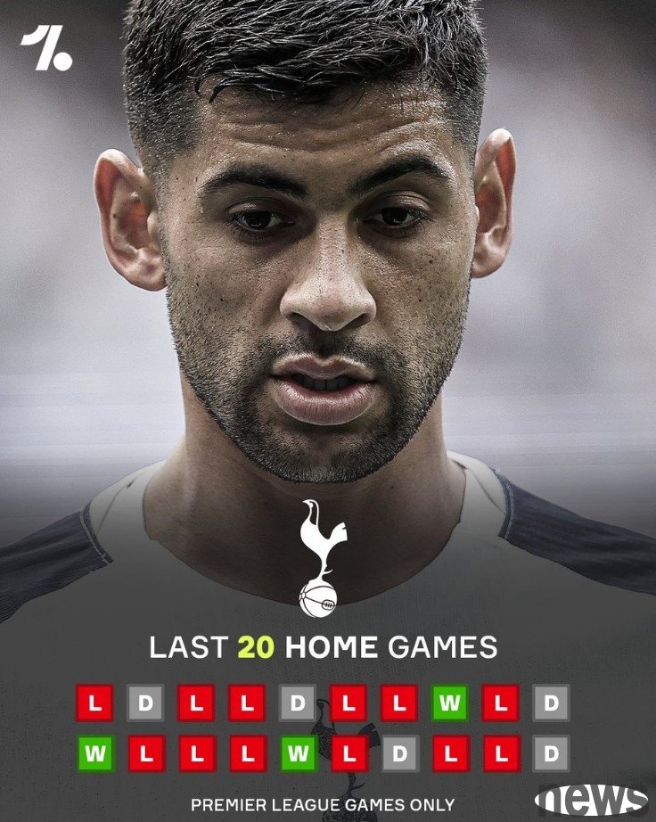 According to statistics, Tottenham have only won 3 games in the past 20 home games in the Premier League, with 5 draws and 12 losses in the remaining games.